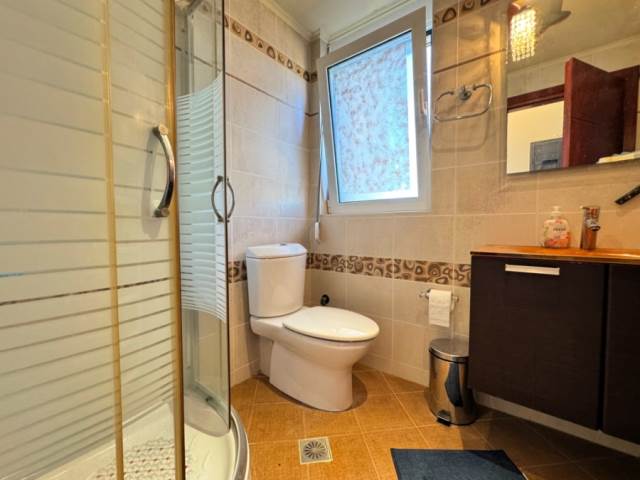 Le rez-de-chaussée de 95 m², se compose d'un grand séjour ouvert - cuisine, de 2 chambres et d'une salle de bain. Il y a une terrasse avec accès au jardin. Le rez-de-chaussée dispose de la climatisation et d'un chauffage autonome au fioul, de radiateurs.