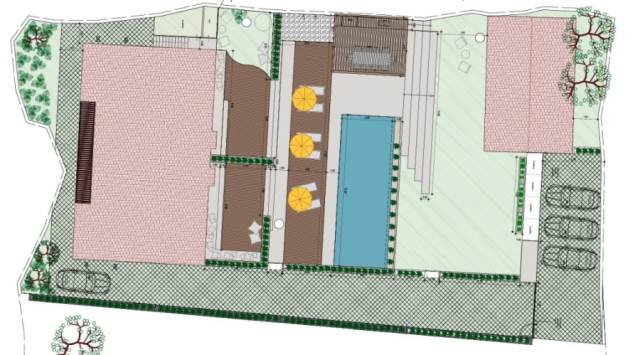 地块内已建成一栋两层石屋,总面积239.20平方米(每层119.60平方米),与周边自然环境和建筑环境完美融合。该房产还拥有地下空间,内设锅炉房、储藏室、车库以及户外区域。此外,还计划建造一个游泳池,这将提升住宿质量和旅游价值。